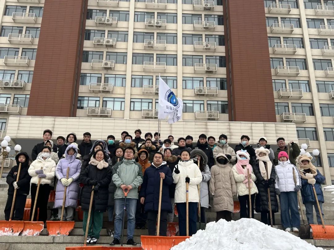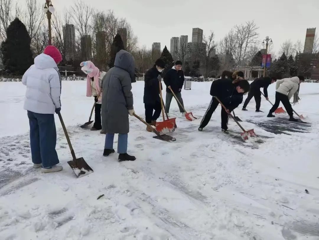 学院以志愿活动推进劳动教育,在一锹锹、一铲铲的挥舞劳动中,同学们不畏严寒、分工有序,对学校主干道部分积雪进行清理,分工明确,配合默契。