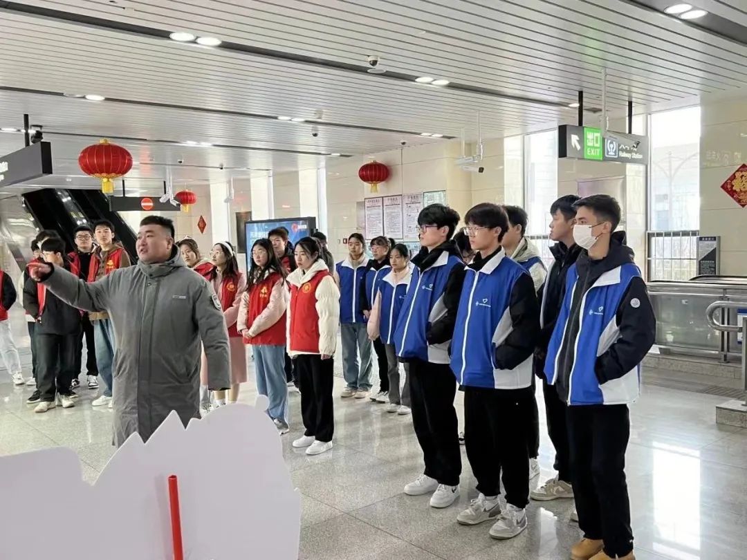 车站工作人员热情地向志愿者们介绍了车站工作内容与乘车路线,带领志愿者们学习了动车运转、自动售票机使用、站点换乘等基本知识。